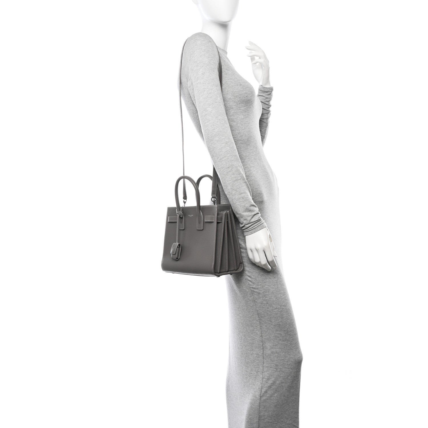 Yves Saint Laurent Grained Calfskin Top Stich Baby Sac De Jour Bag - Grey